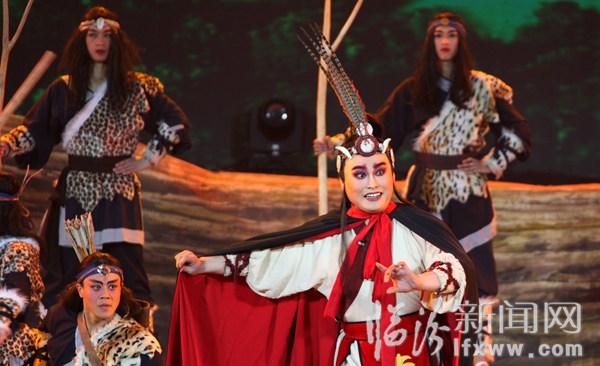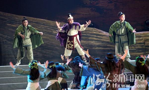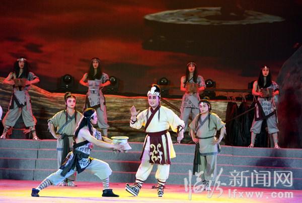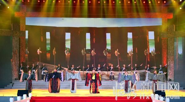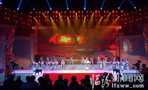 鑿井惠民、龍盤出世、洞房花燭、觀象授時、康衢擊壤、協和萬邦、歷山訪賢、禪讓天下……4月2日晚,在山西?臨汾帝堯古都文化旅游節開幕式結束后,大型音樂舞蹈史劇《堯頌》在九州廣場上演。