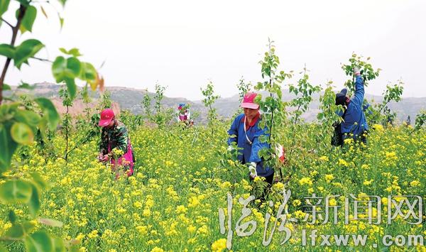 臨汾新聞網(wǎng)訊 春意盎然,陽光明媚。近年來,汾西縣委、縣政府為農(nóng)民增產(chǎn)增收,在汾西縣團(tuán)柏鄉(xiāng)種植“玉露香”梨,發(fā)展雙千畝有機(jī)水果基地,在這春暖花開的季節(jié),隨處可看到農(nóng)民在田間忙碌的身影。為了使盛果期果實得到充足的光照,柴洼村的農(nóng)民在為“玉露香”梨樹進(jìn)行塑形和拉枝。