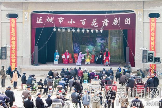 臨汾新聞網訊 (記者 鄭遠飛)3月16日,汾西縣團柏鄉棗坪村舉行一年一度的文化交流會,來自市區、洪洞及周邊村莊的商戶們帶來農資產品、小吃等各色商品,受邀前來的運城市小百花蒲劇團在4天時間里為村民們獻上《大明縣令》《大登殿》《母子情》等7部大戲,村民王多生說:唱戲紅火熱鬧,豐富了咱們老百姓的文化生活。”