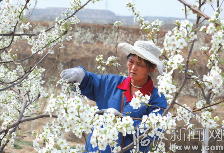 臨汾新聞網訊 忽如一夜春風來,千樹萬樹梨花開。3月29日,在汾西縣高寒農牧專業合作社的千畝有機水果基地內,團柏鄉棗坪村村民郭亞梅正在為梨樹疏花。43歲的郭亞梅家中有年邁的老人與幼小的孩子需要照顧,因此不能長期在外務工,于是利用閑暇時間在附近的合作社務工,不僅能夠管好家里的事兒,還能額外增加些收入。她高興地告訴記者:“在梨園工作每年能有5000多元的收入,也是不錯的!”