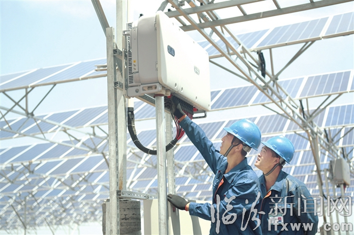 臨汾新聞網訊 7月8日,國家電網汾西縣供電公司的技術人員正在檢修轄區光伏線路。