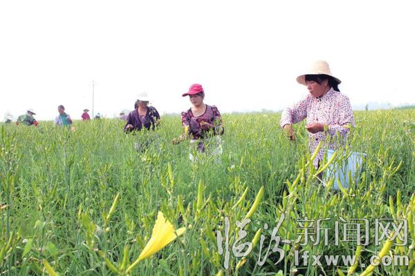 臨汾新聞網訊 近年來,浮山縣張莊鄉城南村王峰合作社采取“專業合作社+基地+農戶”的經營模式,種植300畝黃花菜,年產干黃花菜6000公斤。目前每斤黃花菜可賣到20元,預計300畝可收入120萬元,成為當地農業增效、農民增收的主導產業。 圖為日前村民在基地采摘黃花菜。 衛琦 攝