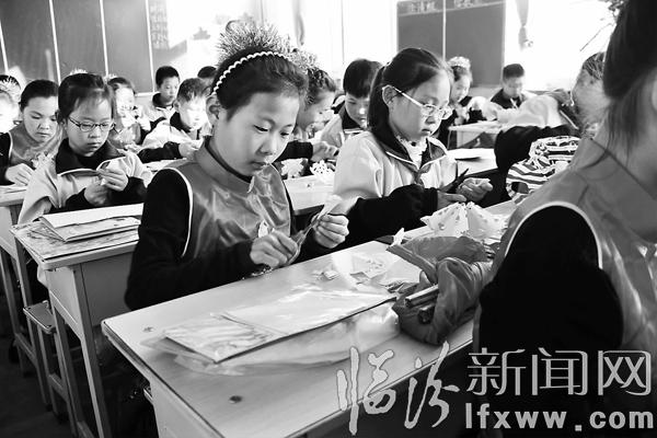 臨汾新聞網訊 浮山縣素有“剪紙之鄉”的美譽。為了使剪紙這一民間藝術更好的傳承和發展,該縣把剪紙教學帶進課堂,并邀請民間剪紙藝人為學生們授課。該項活動的開展深受孩子們的喜愛,既豐富了他們的課余文化生活又為浮山民間剪紙藝術的發展打下了良好的基礎。圖為城關小學四年級學生在老師的示范下完成剪紙作業。 衛琦 攝