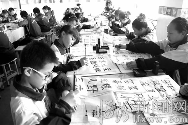 臨汾新聞網訊 去年以來,浮山縣在順利通過“全國義務教育發展基本均衡縣”驗收的基礎上,積極開展了“均衡鞏固年”活動,通過積極開展特色校園活動進一步鞏固和延伸均衡發展成果。圖為該縣城關示范小學的孩子們利用課余時間練習書法。 衛琦 攝