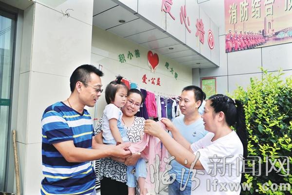 臨汾新聞網訊 近日,在浮山縣堯山西路的“愛心墻”附近,志愿者正在為孩子試穿愛心人士捐贈的衣物。