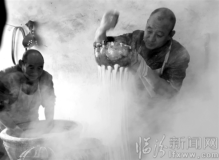 臨汾新聞網(wǎng)訊 近日,浮山縣響水河鎮(zhèn)梁家河村49歲的農(nóng)民梁云龍正在家里制作粉條。梁云龍承包了村里十多畝地種紅薯,冬季再將紅薯磨成粉制作成粉條,年可賺七八萬(wàn),利用勤勞的雙手走上了致富路。