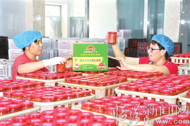 臨汾新聞網訊 浮山縣神農農產品開發有限公司是一家從事西紅柿精深加工的企業。該企業建立發展了2000畝的西紅柿種植基地,采取以“公司+基地+合作社+農戶”的發展模式,帶動該縣7個鄉鎮431戶,1500余口人增產增收,實現了公司盈利與農戶致富的雙豐收。圖為工人師傅正在打包裝箱加工好的西紅柿醬。