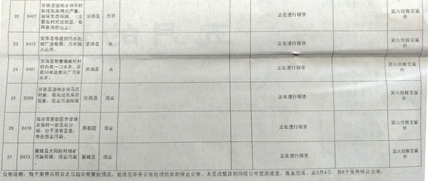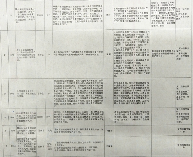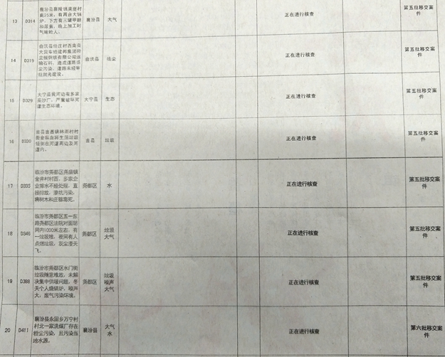 中央環境保護督察移交舉報案件臨汾市邊督邊改情況表