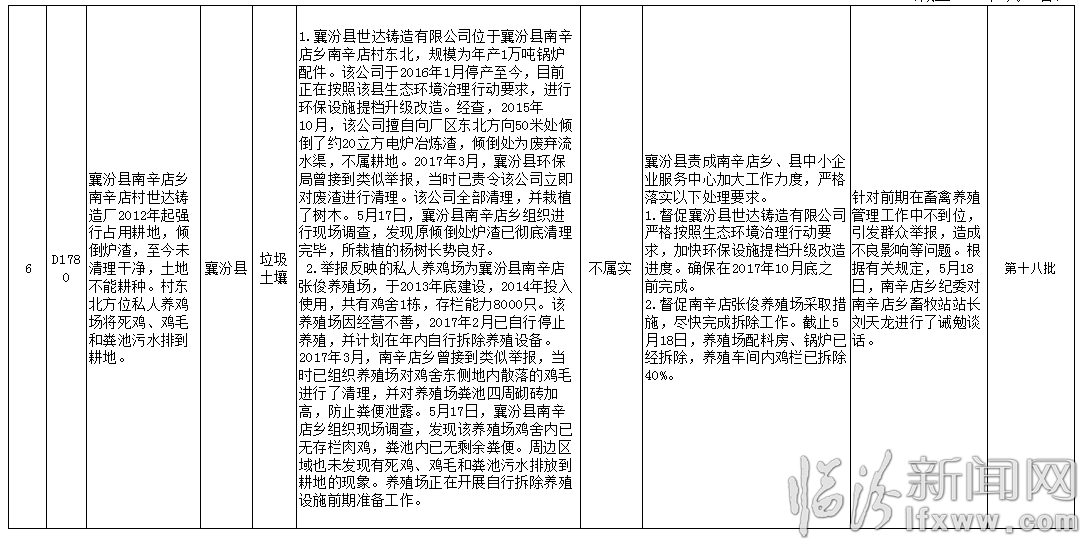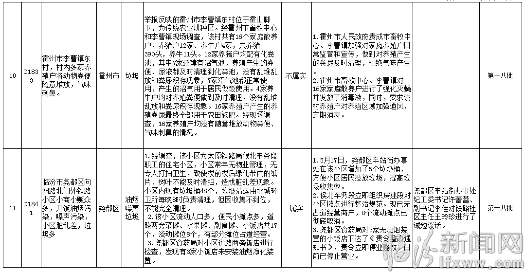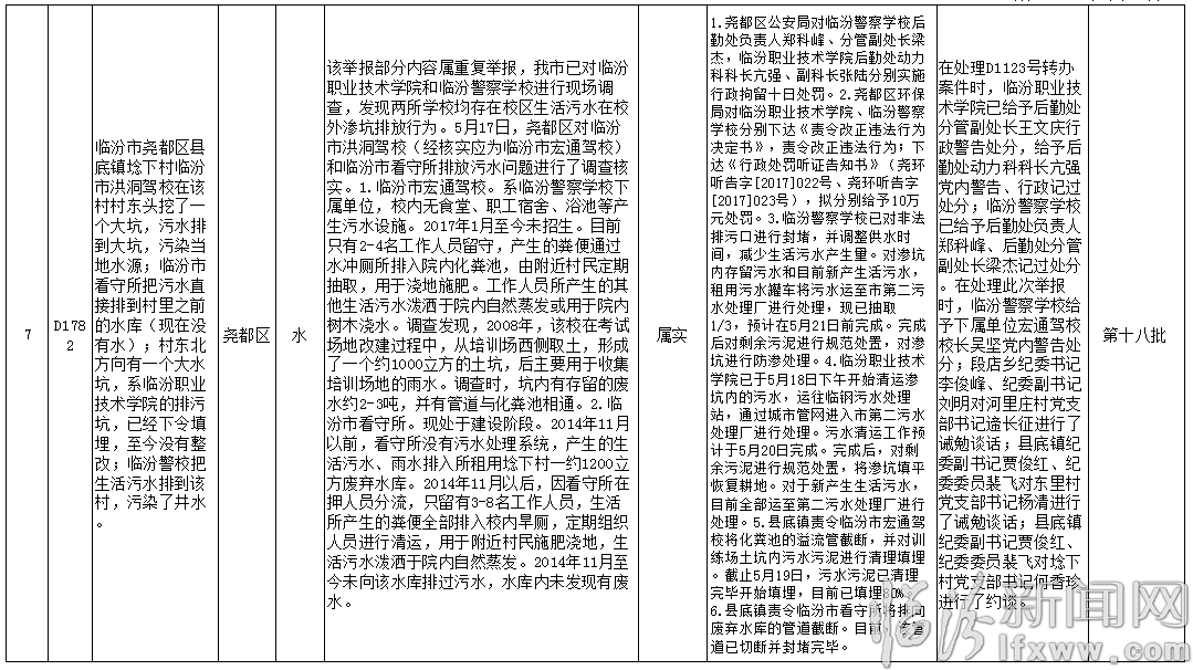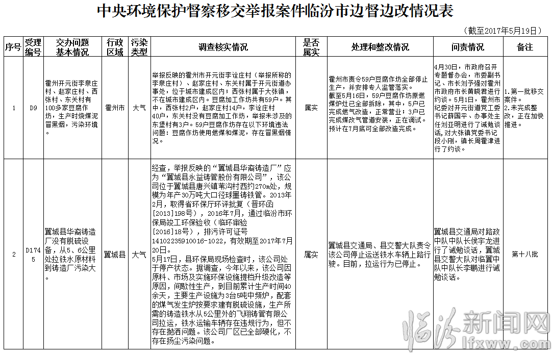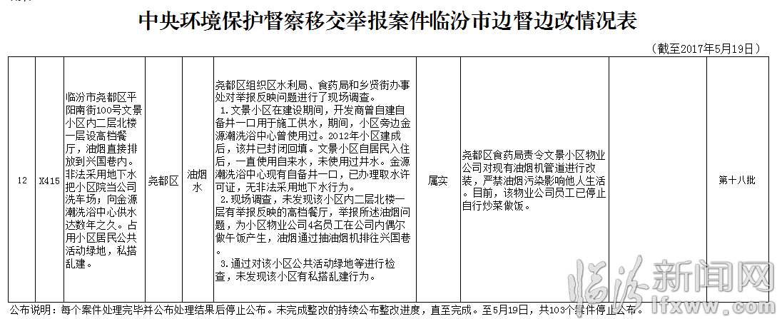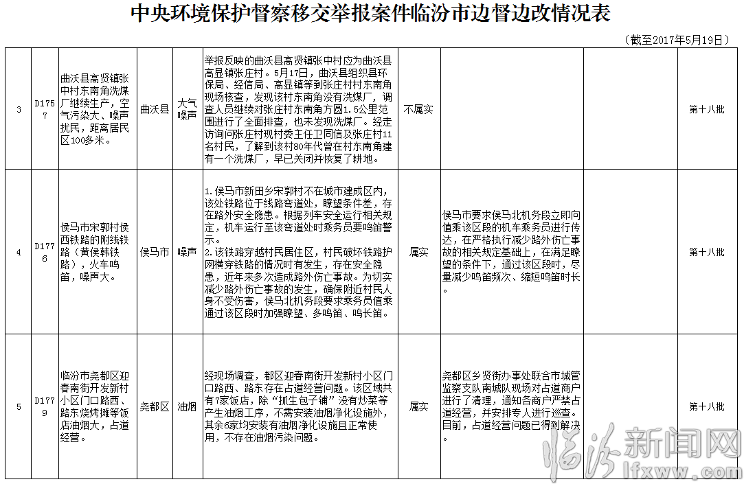 臨汾市關于中央環境保護督察移交舉報案件邊督邊改情況通報
