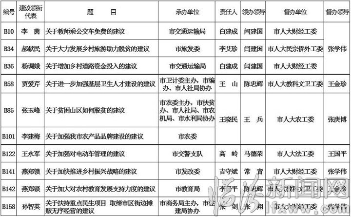 臨汾市人大常委會重點督辦的市四屆人大四次會議代表建議(10件)