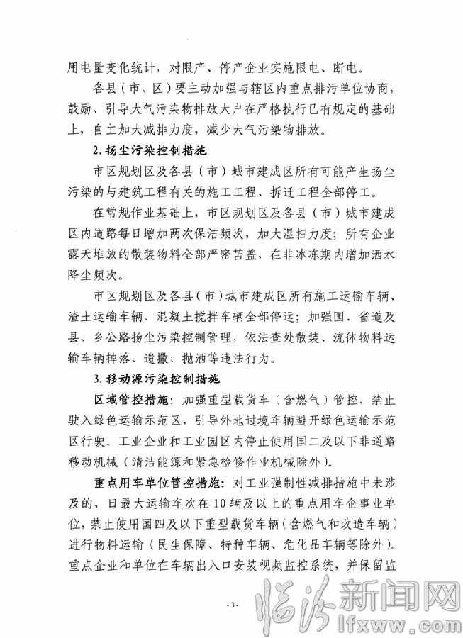 市區(qū)規(guī)劃區(qū)及各縣(市)城市建成區(qū)所有施工運輸車輛、渣土運輸車輛、混凝土攪拌車輛全部停運;加強國、省道及縣、鄉(xiāng)公路揚塵污染控制管理,依法查處散裝、流體物料運輸車輛掉落、遺撒、拋灑等違法行為。