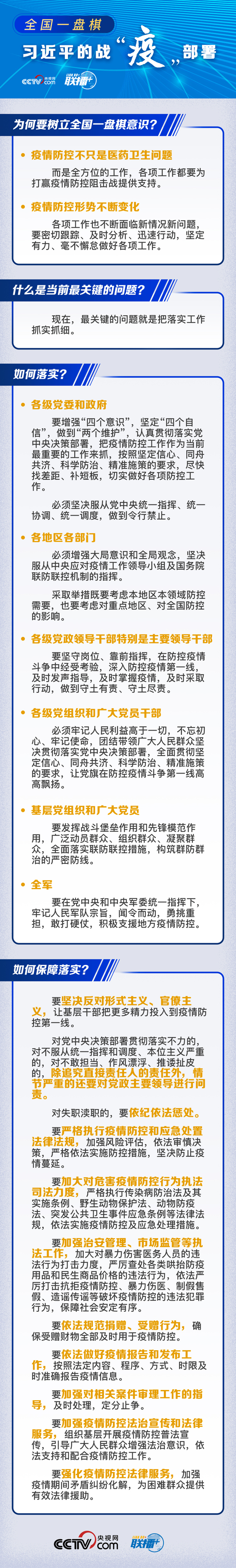 “要在黨中央集中統一領導下,始終把人民群眾生命安全和身體健康放在第一位,從立法、執法、司法、守法各環節發力,全面提高依法防控、依法治理能力,為疫情防控工作提供有力法治保障。”
