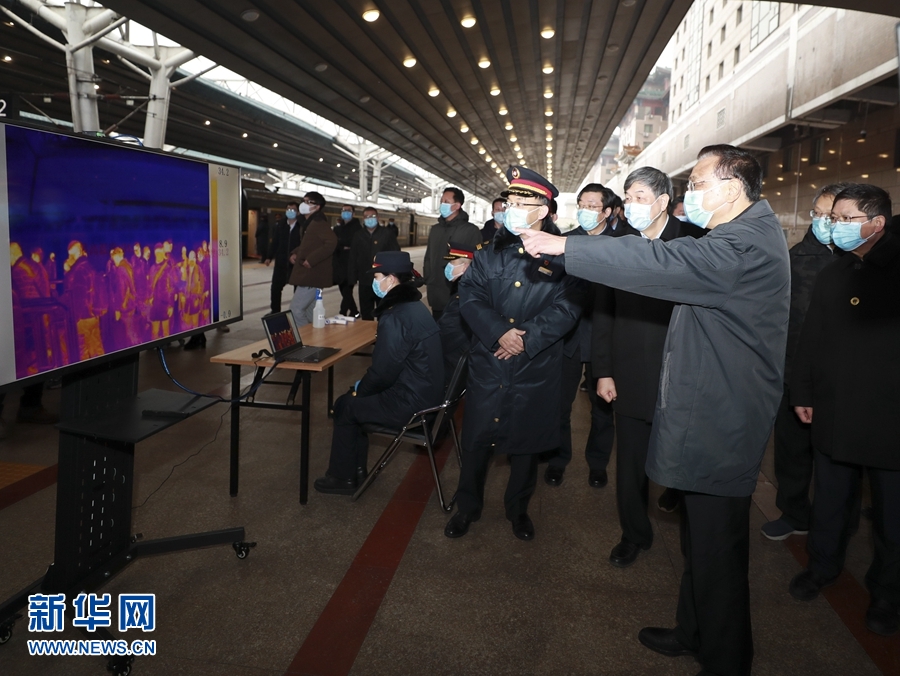 李克強慰問值班的車站員工,叮囑他們加強自身防護,并對全國交通戰線廣大員工堅守崗位、為疫情防控作出的貢獻表示感謝。