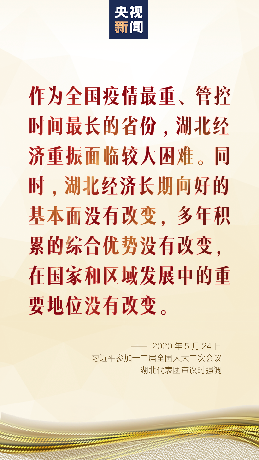 作為全國(guó)疫情最重、管控時(shí)間最長(zhǎng)的省份,湖北經(jīng)濟(jì)重振面臨較大困難。同時(shí),湖北經(jīng)濟(jì)長(zhǎng)期向好的基本面沒有改變,多年積累的綜合優(yōu)勢(shì)沒有改變,在國(guó)家和區(qū)域發(fā)展中的重要地位沒有改變。
