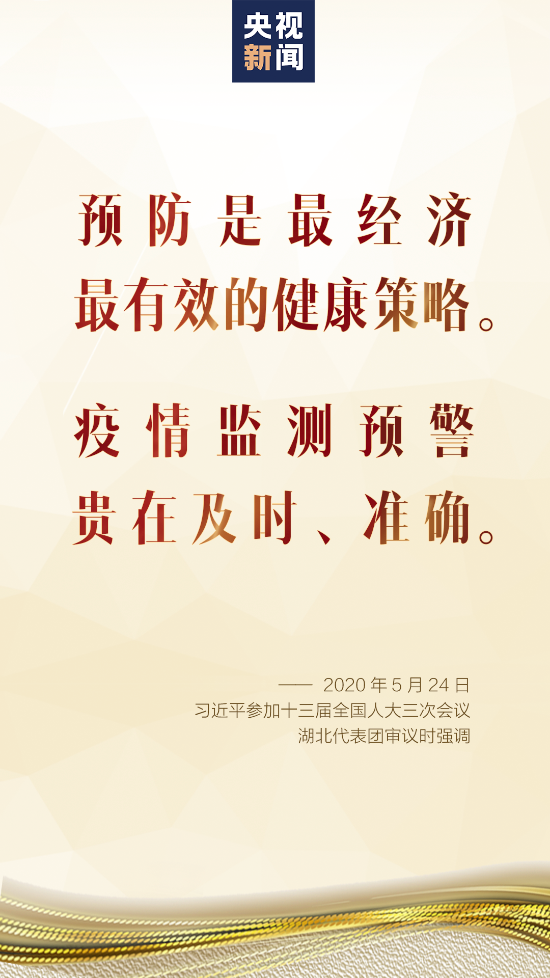 習(xí)近平24日下午在參加十三屆全國(guó)人大三次會(huì)議湖北代表團(tuán)審議時(shí)強(qiáng)調(diào),防范化解重大疫情和突發(fā)公共衛(wèi)生風(fēng)險(xiǎn),事關(guān)國(guó)家安全和發(fā)展,事關(guān)社會(huì)政治大局穩(wěn)定。
