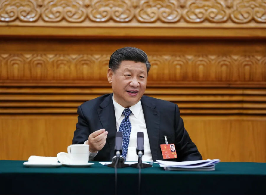 5月24日,中共中央總書記、國家主席、中央軍委主席習近平參加十三屆全國人大三次會議湖北代表團的審議。新華社記者 黃敬文 攝