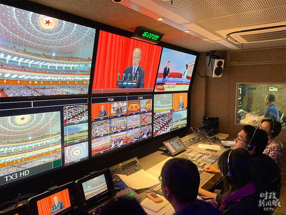 △25日,中央廣播電視總臺現場直播全國人大會議第二次全體會,這是轉播車內工作現場和會場內。(總臺央視記者王志明、楊波拍攝)