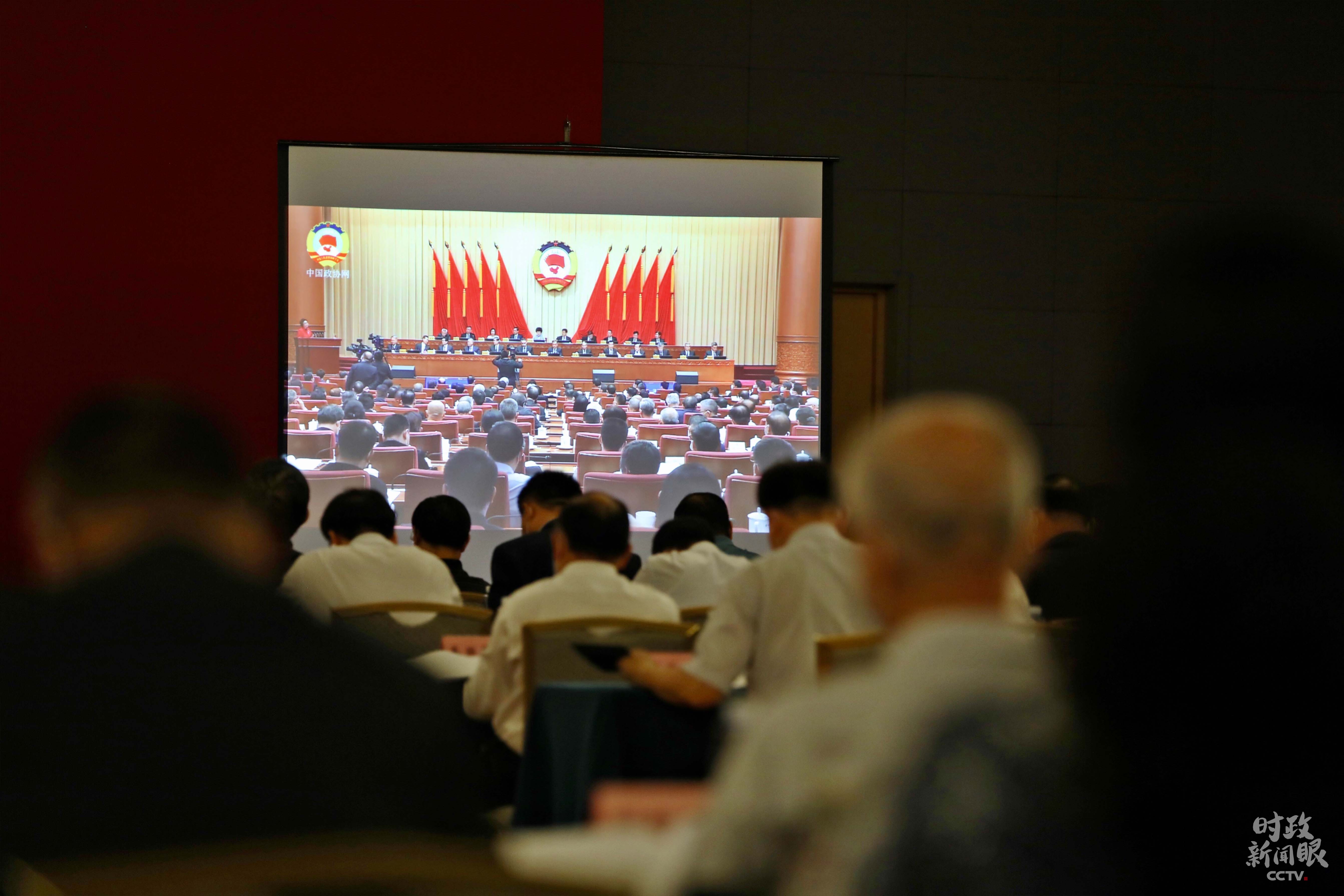 △代表們聽取和審議全國人大常委會工作報告。(總臺央視記者彭漢明拍攝)