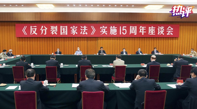 《反分裂國家法》實施15周年座談會29日在人民大會堂隆重舉行。回顧這部法律實施15年來的歷程,其為維護臺海和平穩(wěn)定、促進兩岸關(guān)系發(fā)展提供了堅實的法治保障,在當前 “臺獨”挾洋自重、嚴重挑戰(zhàn)國家主權(quán)和領(lǐng)土完整的時候,也依然保持了強大的震懾力:“臺獨”若敢以身試法,必將遭到嚴懲!