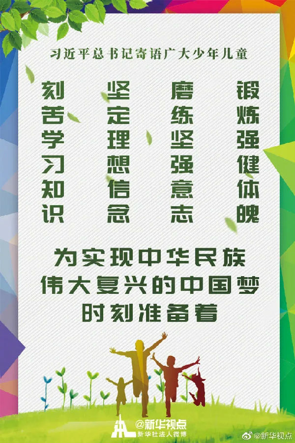 在“六一”國際兒童節(jié)到來之際,中共中央總書記、國家主席、中央軍委主席習(xí)近平代表黨中央,向全國各族少年兒童致以節(jié)日的祝賀!