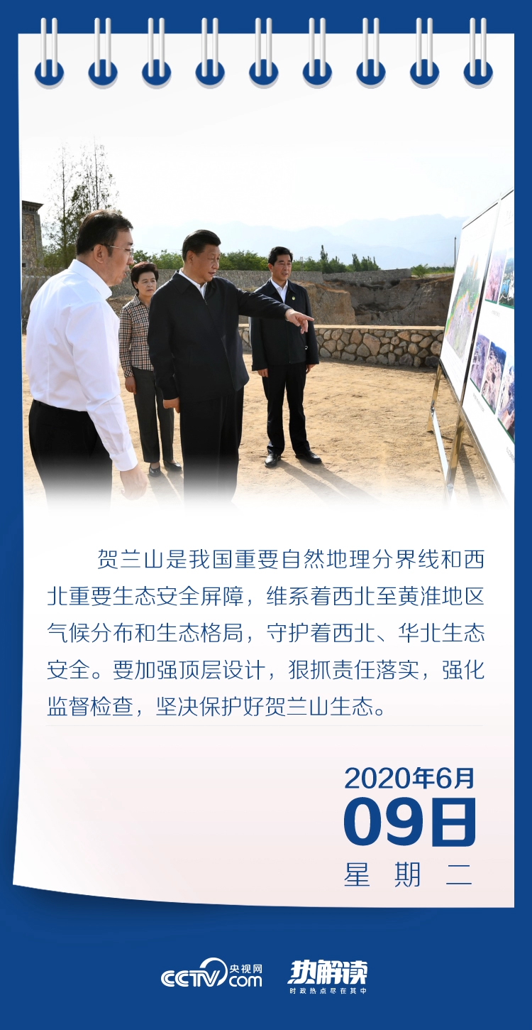 此次寧夏行,習近平總書記在賀蘭山東麓的葡萄種植園遠眺,再次強調:“要加強頂層設計,狠抓責任落實,強化監督檢查,堅決保護好賀蘭山生態。”