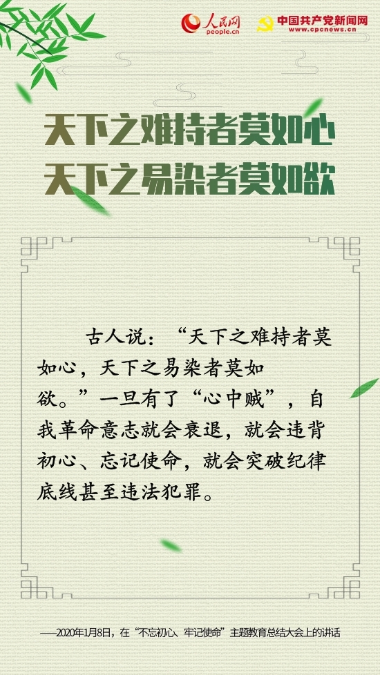 以古為鏡、旁征博引,習近平總書記多次在論述中國共產黨人的初心使命時引用古典名句,并賦予它們鮮活的當代價值與意義,意境深遠、引人入勝。