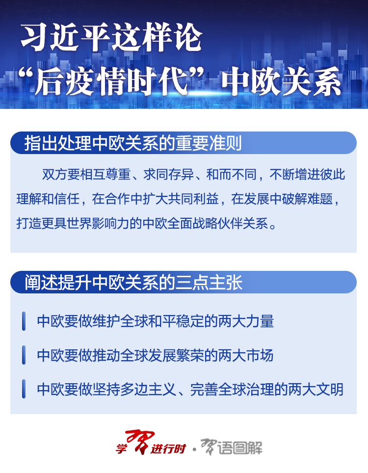 22日,習近平以視頻方式會見歐洲理事會主席米歇爾和歐盟委員會主席馮德萊恩時,提出中歐“要做維護全球和平穩定的兩大力量”“要做推動全球發展繁榮的兩大市場”“要做堅持多邊主義、完善全球治理的兩大文明”三點重要主張,為推動“后疫情時代”中歐關系在合作中擴大共同利益指明了方向。