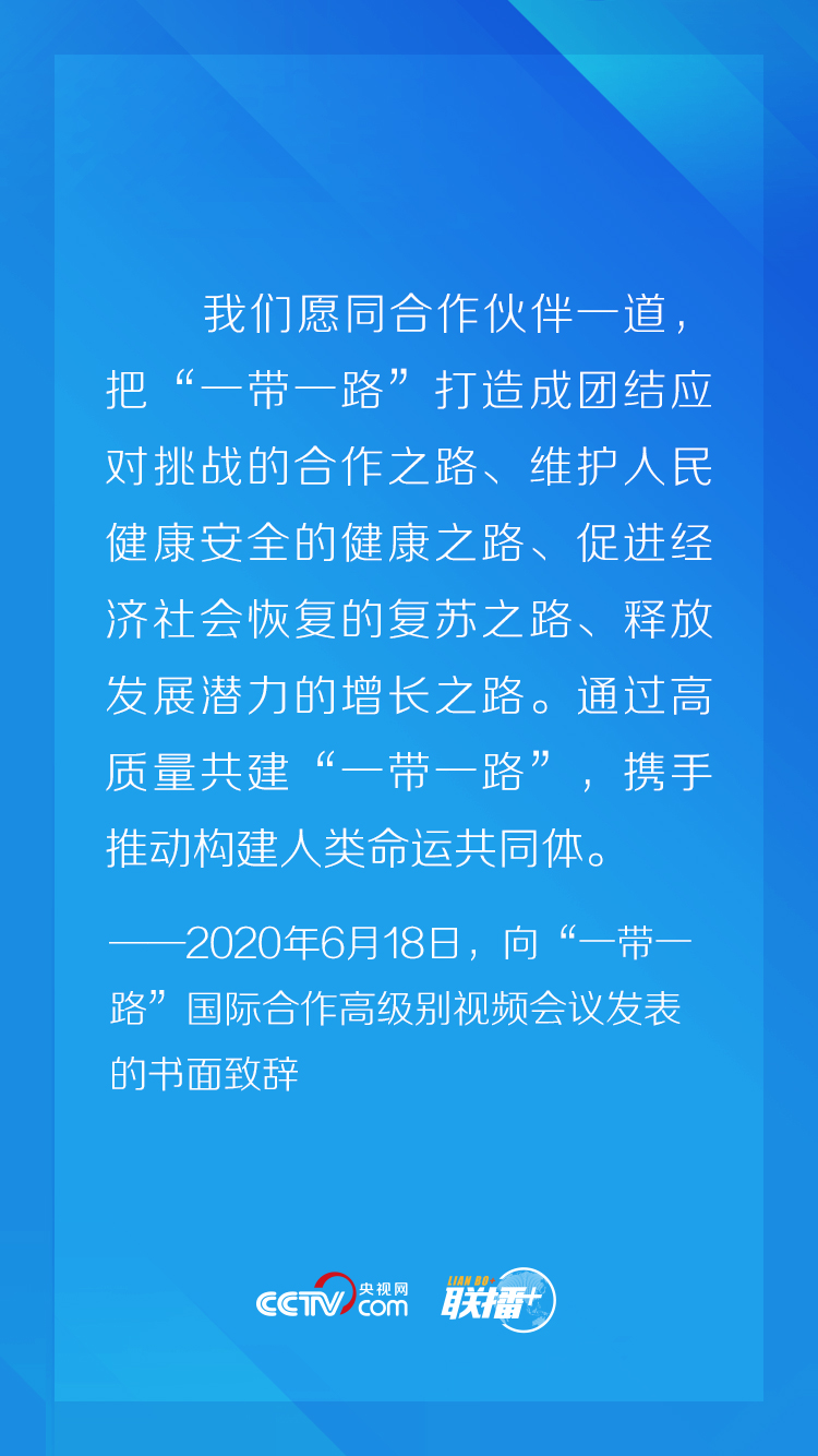 聯播+“無論是應對疫情,還是恢復經濟,都要走團結合作之路,都應堅持多邊主義。促進互聯互通、堅持開放包容,是應對全球性危機和實現長遠發展的必由之路,共建‘一帶一路’國際合作可以發揮重要作用。”