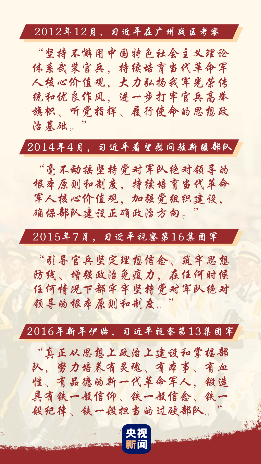 從北國邊疆到嶺南大地,從大漠戈壁到東海之濱,無論走到哪里,習主席都對鑄牢軍魂反復強調、再三叮囑。