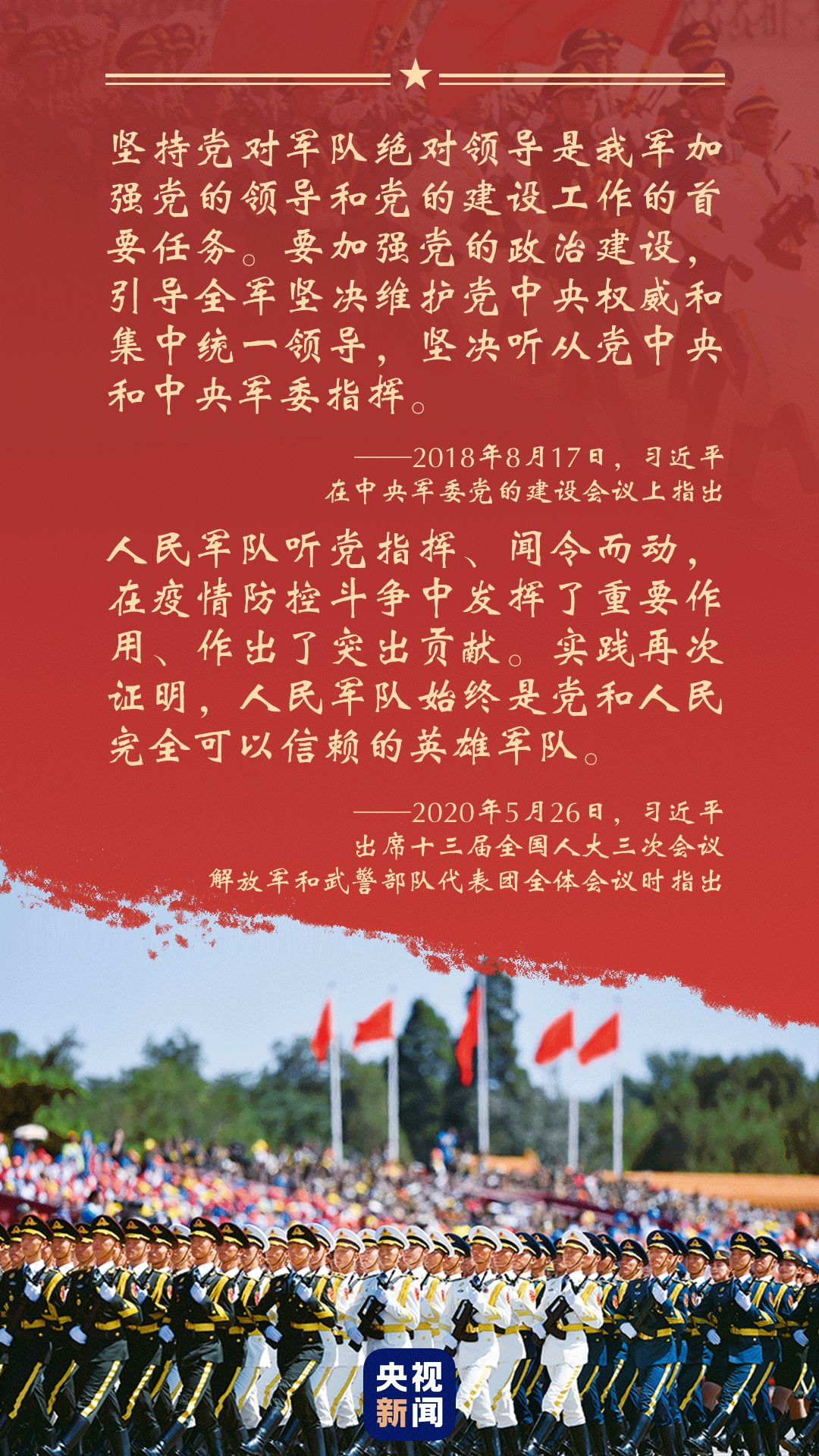 建軍93年來,人民軍隊始終與黨同心同德、步調一致,無論面臨什么樣的風險、誘惑和干擾,都矢志不渝聽黨話跟黨走,以實際行動彰顯對黨的絕對忠誠。