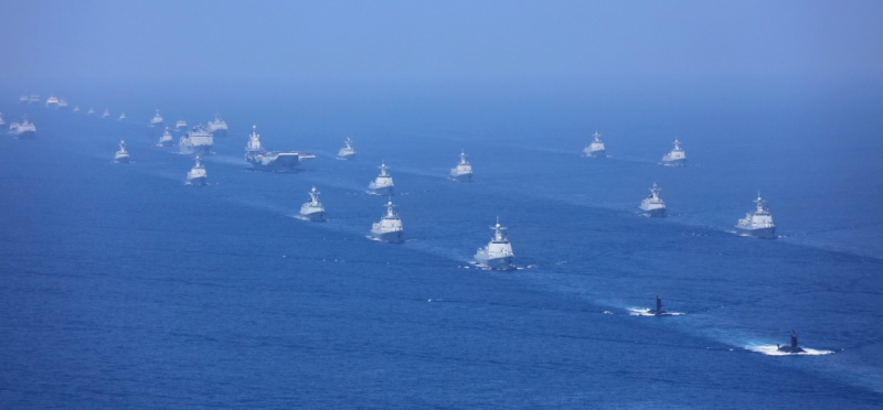 ▲ 2018年4月12日,中央軍委在南海海域隆重舉行海上閱兵。這是航母打擊作戰群等接受檢閱。