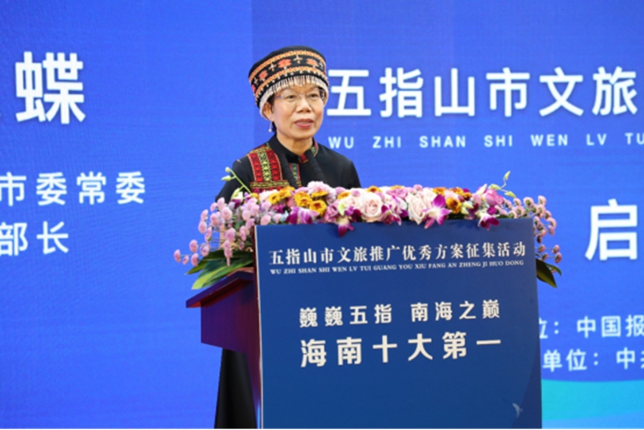 作為活動主辦方代表,身著黎族傳統(tǒng)服飾的五指山市委常委、宣傳部部長王楚蝶向支持、參加本次發(fā)布會的領(lǐng)導(dǎo)來賓表示感謝,并就五指山市文旅進(jìn)行了現(xiàn)場推介。“不到五指山,不算到海南。”王楚蝶介紹,五指山市有探險漂流旅游、休閑度假、康體養(yǎng)生、森林生態(tài)、民俗旅游、科普教育、紅色旅游等豐富多樣的旅游產(chǎn)品,可組合成自然和人文相結(jié)合的綜合性旅游產(chǎn)品群,使五指山市的旅游可賞、可游、可玩、可住、可學(xué)、可體驗,極具趣味性、知識性和可參與性。王楚蝶希望通過此次方案征集活動,能補(bǔ)齊當(dāng)?shù)匚穆闷放朴蛲庵取⒈孀R度相對較低的短板,打造一批定位精準(zhǔn)的優(yōu)質(zhì)文旅IP。