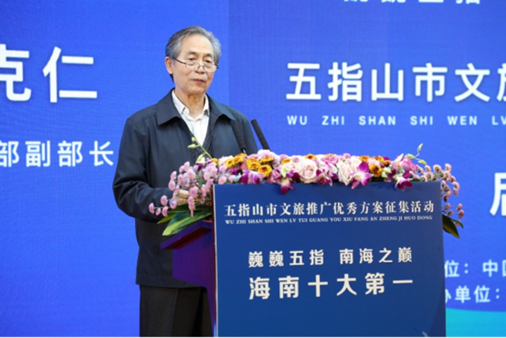 原文化部副部長、本次征集活動評審專家常克仁代表評審專家組致辭。常克仁表示,評審專家組將通過實地考察、線上評審、視頻評審以及12月20日的現(xiàn)場評審,從征集到的方案中公平、公正地選出好作品、好方案,并希望最佳方案及其團(tuán)隊能與五指山市緊抓“十四五”期間文化建設(shè)對旅游業(yè)的戰(zhàn)略引領(lǐng)和支撐作用,在“巍巍五指,南海之巔”豎起一面健康中國、文化旅游雙贏的紅旗。