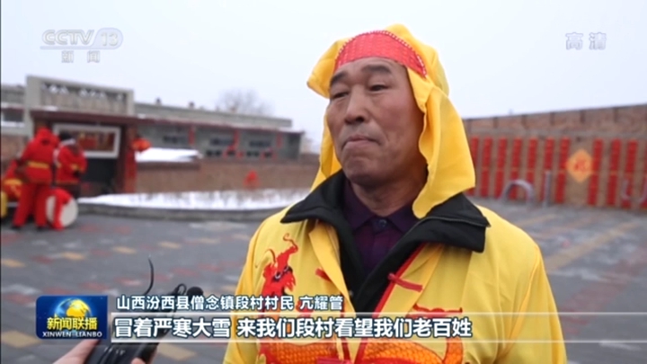 山西汾西縣僧念鎮段村村民 亢耀管:冒著嚴寒大雪,來我們段村看望我們老百姓,我們心情特別激動。我們以后要加油干、好好干,日子越過越好!