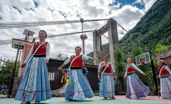 △云南省怒江州福貢縣石月亮鄉(xiāng)拉瑪?shù)状宕迕褡园l(fā)組成的“奮進(jìn)合唱團(tuán)”在村委會排練節(jié)目。