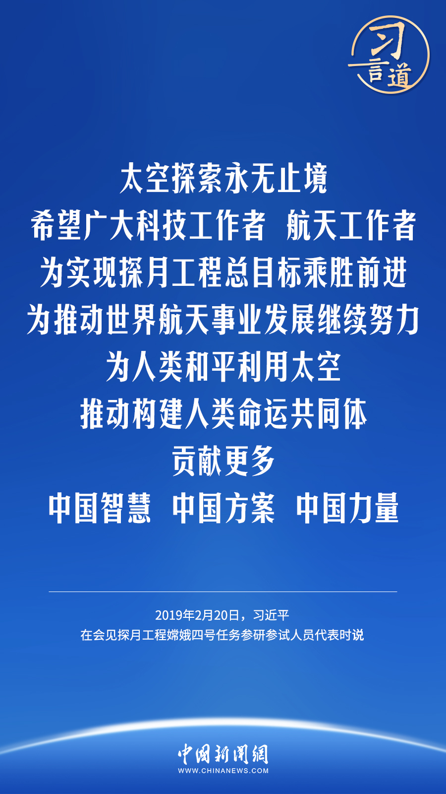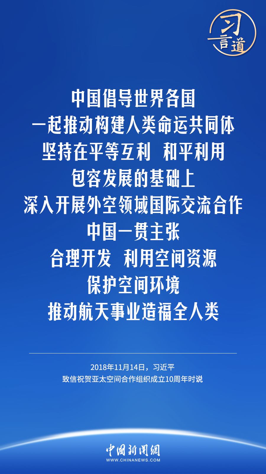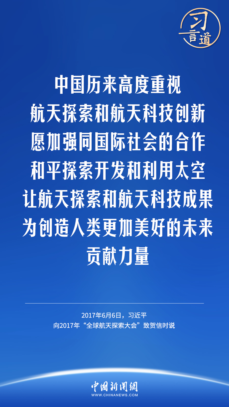 太空探索永無止境。習(xí)近平總書記多次強調(diào),愿加強同國際社會的合作,為人類和平利用太空、推動構(gòu)建人類命運共同體貢獻更多中國智慧、中國方案、中國力量。