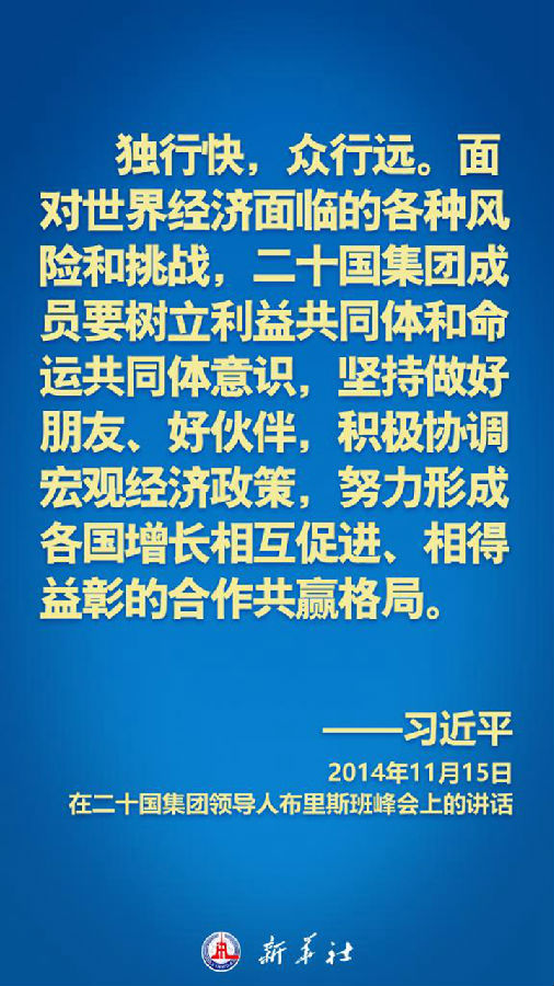 自2013年以來,習近平主席出席歷次二十國集團峰會,為攜手促進世界經濟強勁、可持續、包容和平衡增長提供中國方案,為完善全球經濟治理貢獻中國智慧。