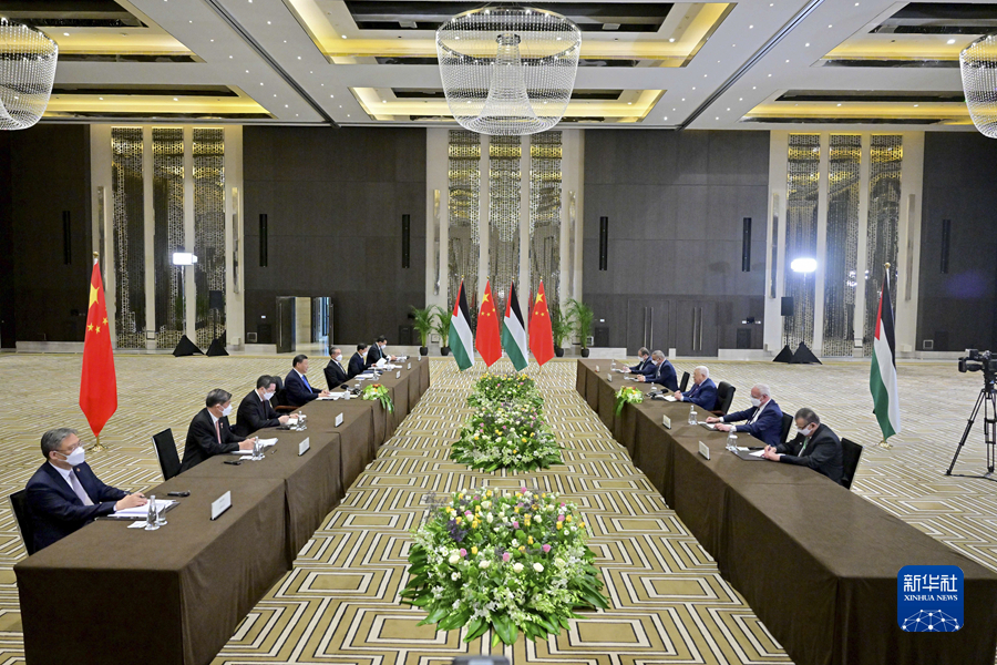 阿巴斯表示,巴勒斯坦人民對同中國人民的友好關系深感自豪。中國是巴勒斯坦真誠和可信賴的朋友,始終堅定支持巴勒斯坦人民的正義事業,在政治、經濟、道義等各方面均給予巴方全面、無條件支持,全體巴勒斯坦人民都對中國人民懷有誠摯感情。中方在國際場合秉持的立場正義公道,提出的倡議主張積極且富建設性,巴方堅定同中國站在一起。巴方將繼續堅定恪守一個中國原則,堅定支持中方在涉臺、涉港、涉疆等問題上的正當立場,堅定支持并積極參與共建“一帶一路”,愿同中方繼續加強各領域合作。巴方期待同中方一道,推動明天舉行的首屆阿中峰會取得成功。