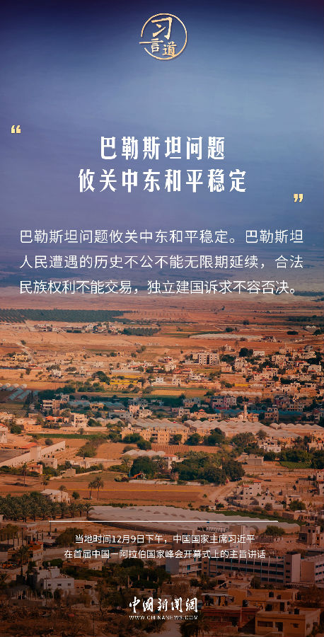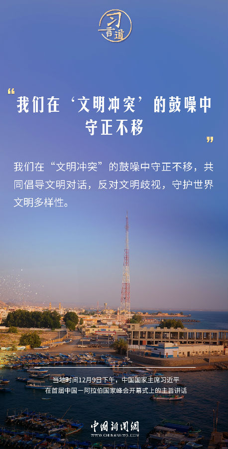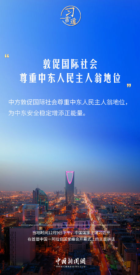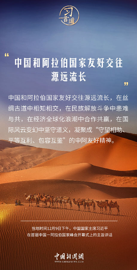 當地時間12月9日下午,首屆中國—阿拉伯國家峰會在沙特首都利雅得阿卜杜勒阿齊茲國王國際會議中心舉行。中國國家主席習近平在主旨講話中指出——
