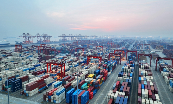 △2023年1月1日,江蘇省太倉(cāng)港集裝箱碼頭吞吐作業(yè)繁忙有序。