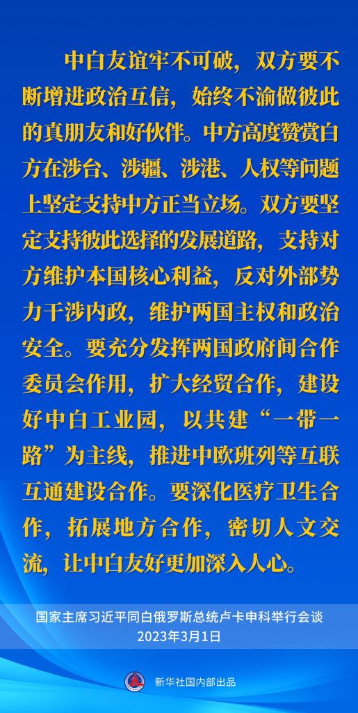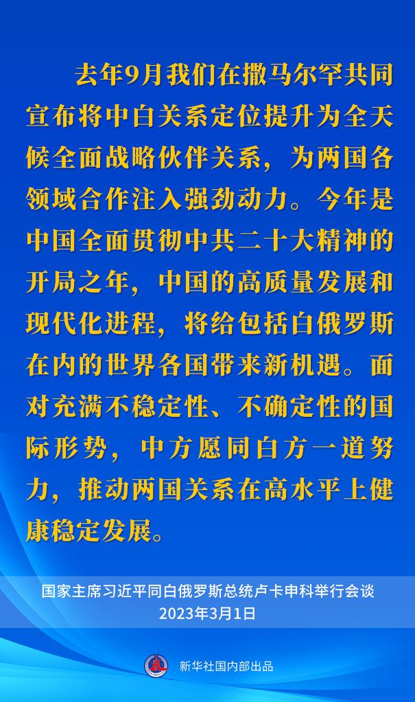 3月1日,國家主席習近平在人民大會堂同來華進行國事訪問的白俄羅斯總統盧卡申科舉行會談。一起來看習近平主席的談話要點。