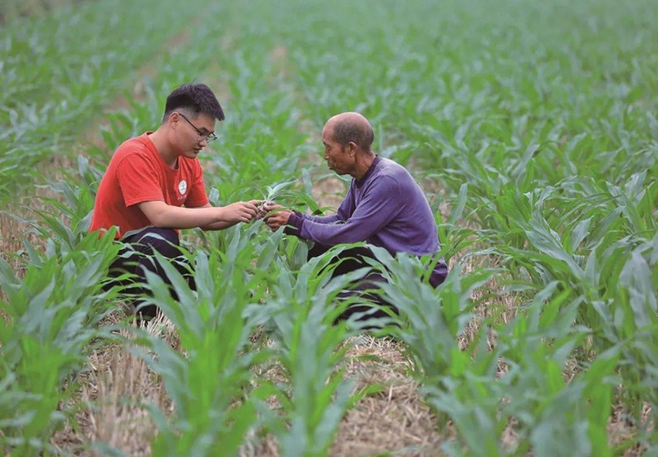 △科技小院的學(xué)生在給村民講解玉米種植知識。