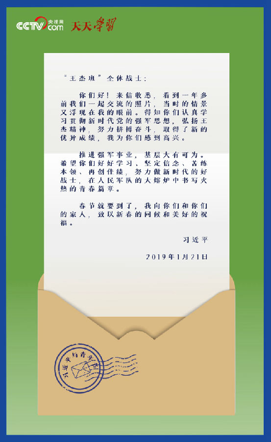 2019年春節前夕,第71集團軍某旅“王杰班”全體戰士收到了一封特別的回信。
