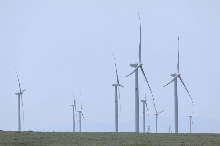 圖為2021年5月24日在哈薩克斯坦扎納塔斯拍攝的風電場的風機。新華社發(fā)(奧斯潘諾夫攝)