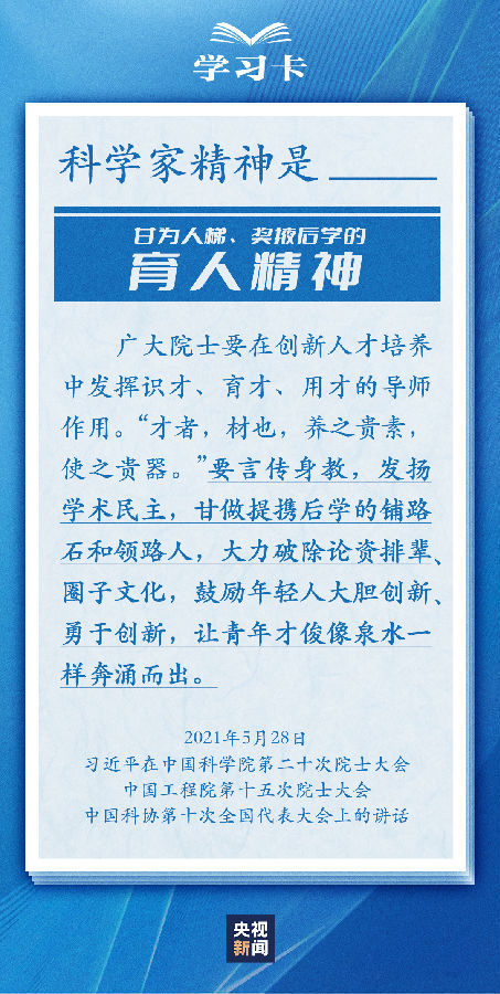 習近平總書記曾多次談到科學家精神,“科學家精神是科技工作者在長期科學實踐中積累的寶貴精神財富。”如何理解科學家精神?今天(2023年5月30日)是第七個科技工作者日,一起學習↓