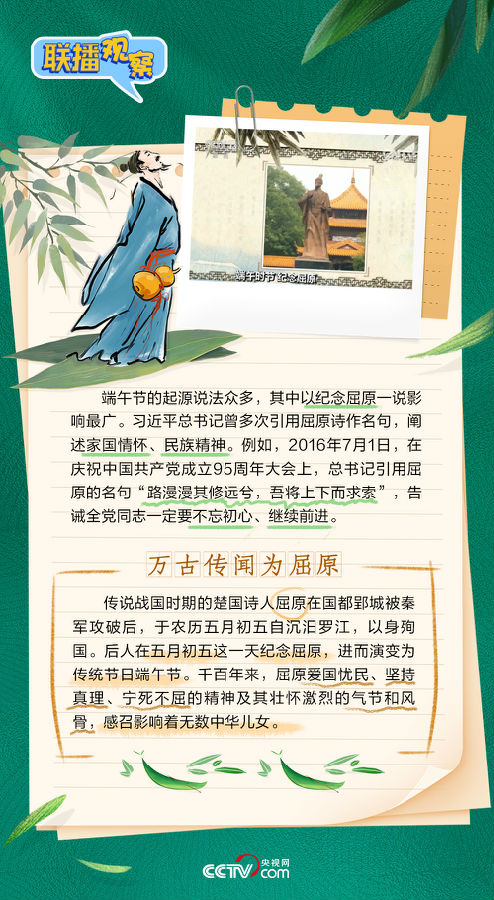 習(xí)近平總書記曾在多個場合對端午節(jié)的傳統(tǒng)習(xí)俗、文化標(biāo)識傾注關(guān)懷。央視網(wǎng)《聯(lián)播+》特推出海報,與您品習(xí)俗、度佳節(jié)。