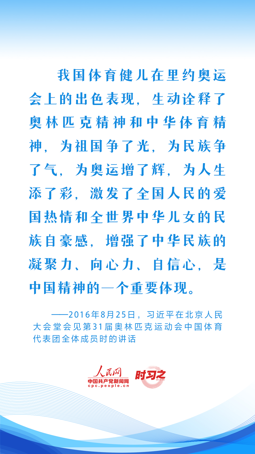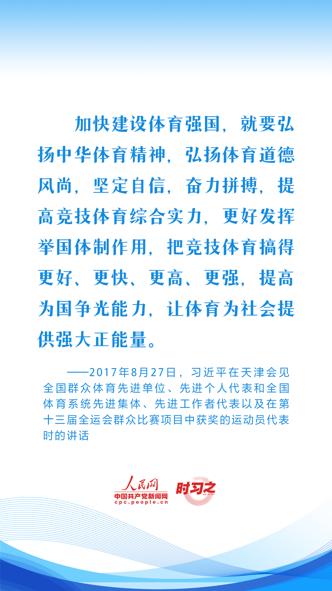 習近平始終心系體育事業發展,句句鏗鏘話語激勵著廣大體育工作者繼續弘揚奧林匹克精神和中華體育精神,推動我國體育強國建設。