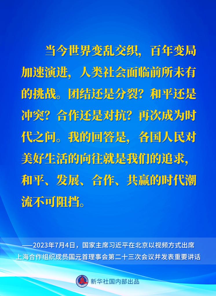 國家主席習近平7月4日下午在北京以視頻方式出席上海合作組織成員國元首理事會第二十三次會議并發表重要講話。一起來看講話要點。