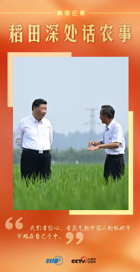 遠眺廣袤田野,總書記思慮深遠:“民以食為天。推進農業現代化,既要靠我們中國的農業專家,也要靠我們中國的農民,我們有信心、有底氣實現糧食安全的目標。四川要把農業搞好,把糧食生產抓好。”