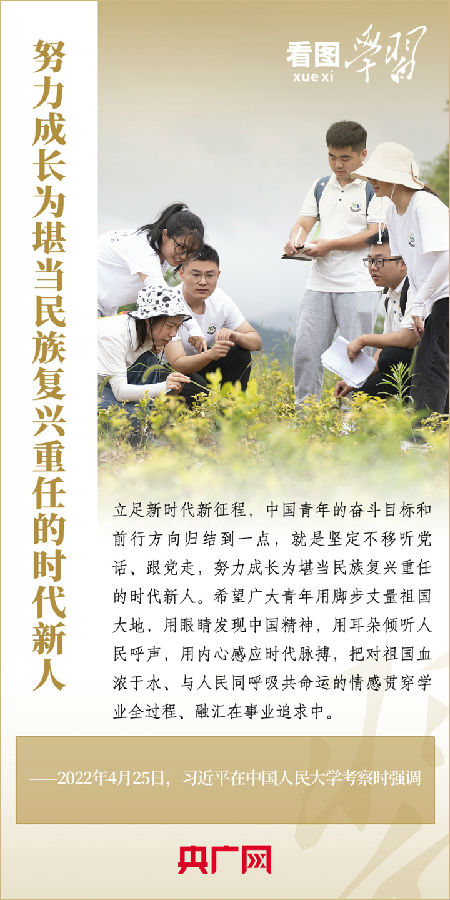 習近平總書記高度重視青年工作,關心青年成長成才。無論是地方考察到基層、進企業、訪社區、走鄉村,還是多次考察高校、科研院所,總書記與青年人面對面交流,經常通過書信方式勉勵廣大青年珍惜青春、追逐夢想、拼搏奮斗。讓我們一起來感悟學習,在強國建設、民族復興大道上不負重托、不負韶華!